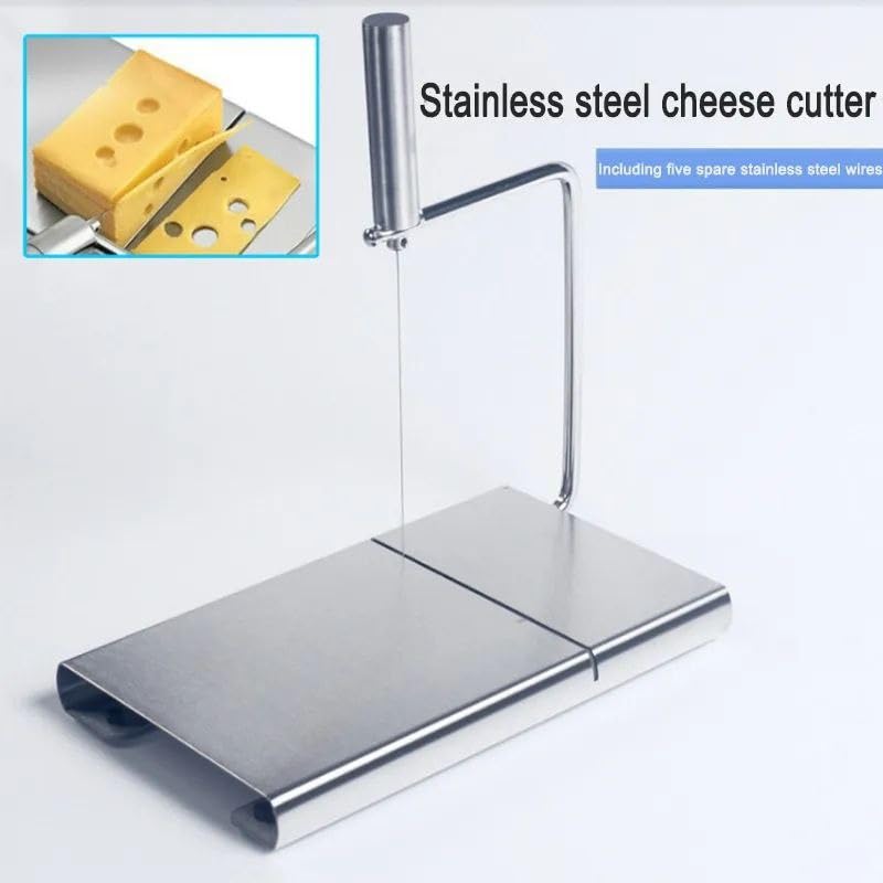 - يتميز المنتج بقطاعة جبن استانلس استيل عالية الجودة مع لوح تقطيع سلكي متين.