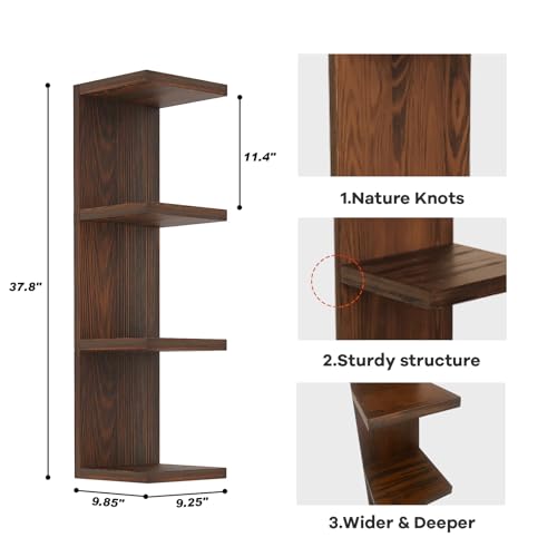 LitaEther - وحدة رفوف حائط خشبية متعددة الاستخدامات مكونة من 4 طبقات من ليتا ايثر، رفوف عائمة خشبية مثبتة على الحائط لبيت المزرعة بارتفاع 37.8 انش × عرض 9.25 انش × عمق 9.85 انش