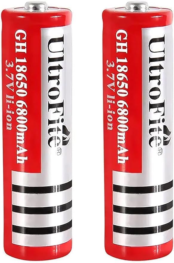 Generic - شاحن بطارية ليثيوم ايون GH 18650 محمية وقابلة لاعادة الشحن، بجهد 3.7 فولت وقدرة 6800 مللي امبير في الساعة، متوافقة مع كاميرا فلاش، عبوة من 2 قطعة