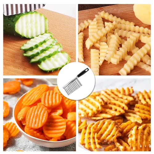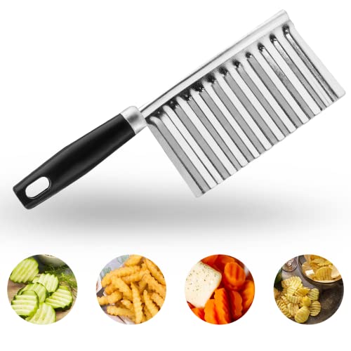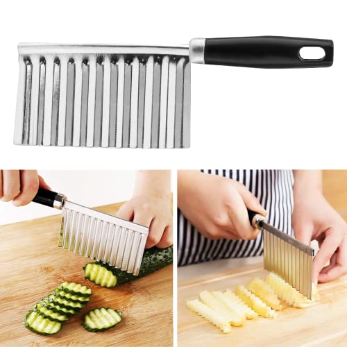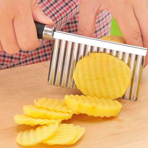 - ✅ الوظيفة: تساعدك أداة التقطيع المجعدة المصنوعة من الفولاذ المقاوم للصدأ على إضافة الأناقة إلى وجباتك. حوّلي البطاطس المقلية العادية إلى بطاطس مجعدة، أو استخدميها لتقطيع قطع مخلل متموجة.