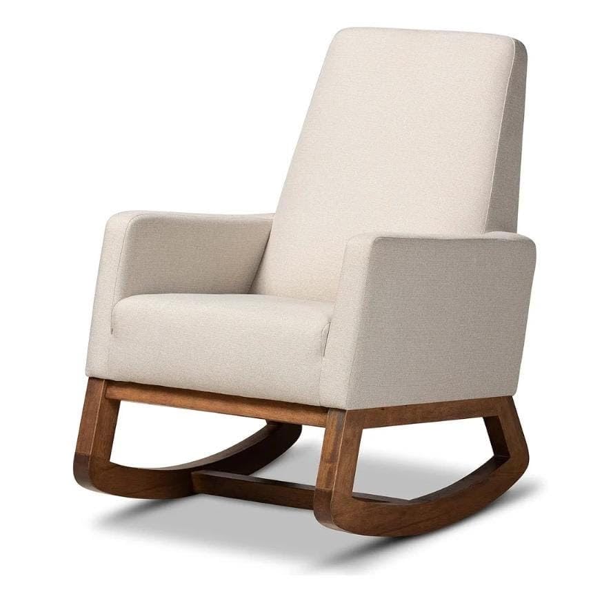 - كرسي هزاز تقليدي مكسو بنسيج فخم وناعم الملمس بلون أبيض (Off-White).