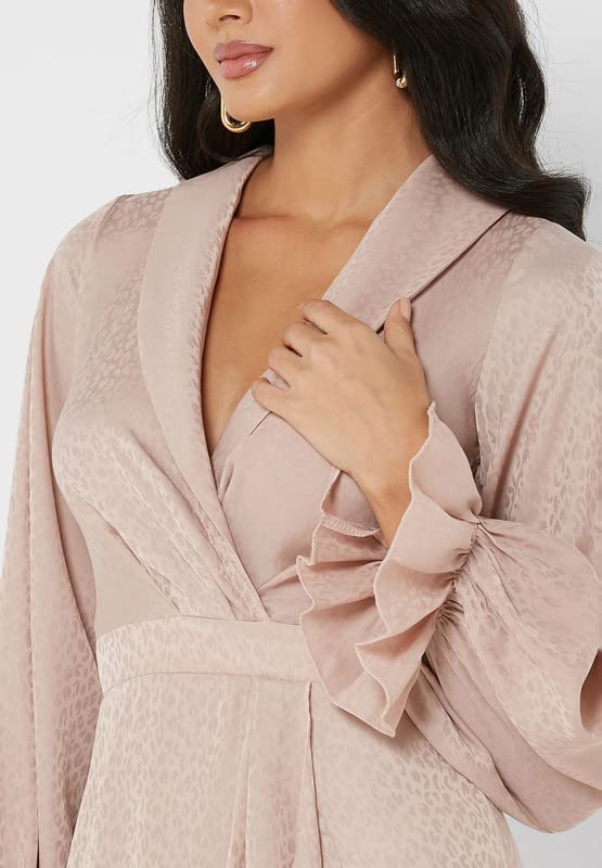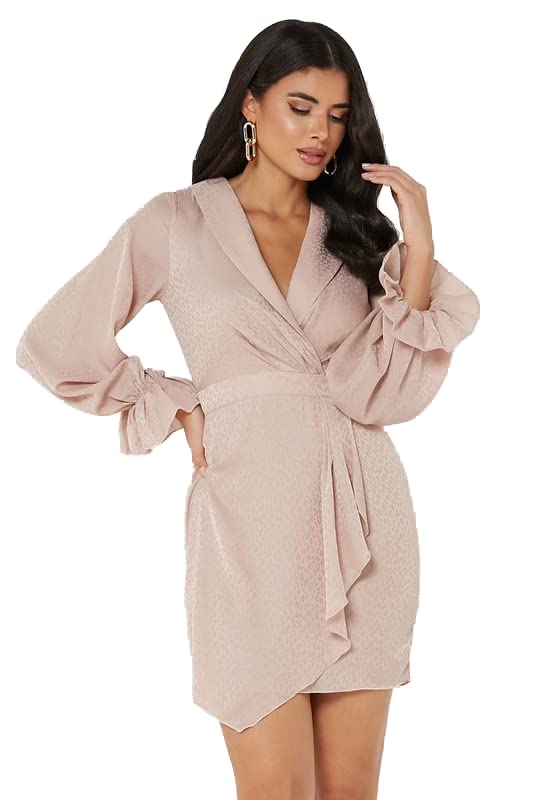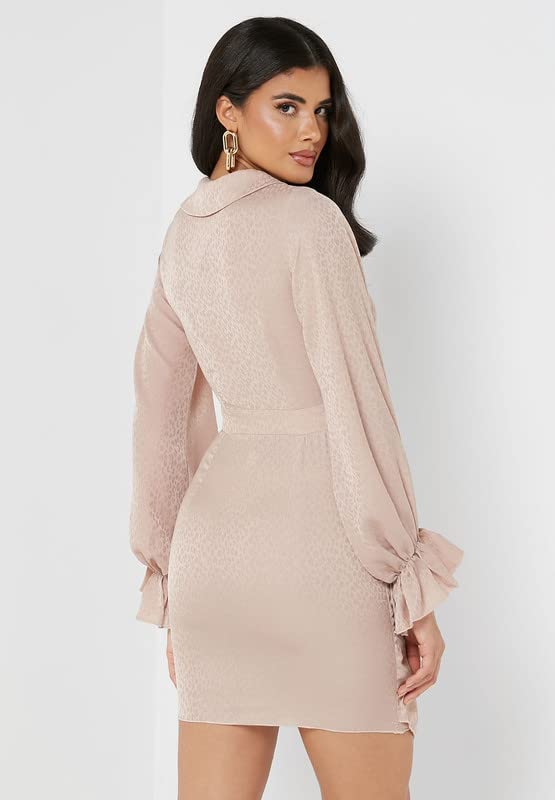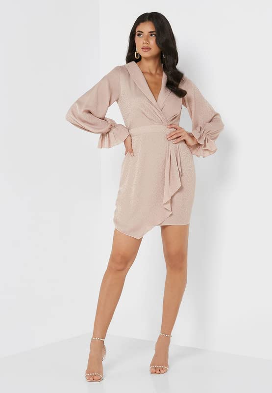 Little Mistress - ليتل ميستريس فستان بكشكشة واكمام منفوخة للنساء، مقاس M، لون بيج