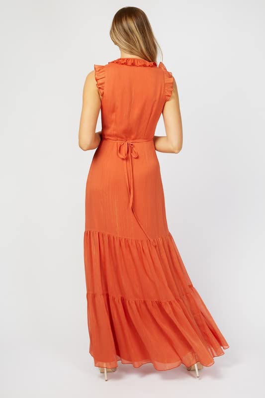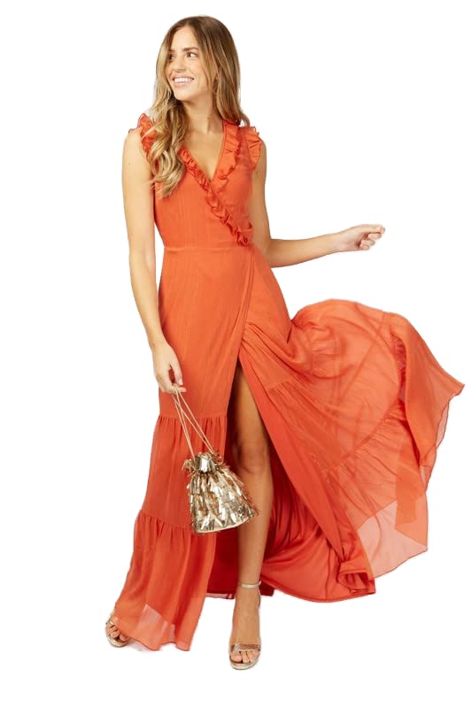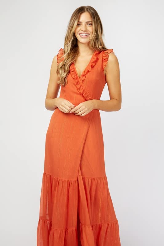 Little Mistress - ليتل ميستريس فستان ماكسي ملفوف بكشكشة هولندا للنساء، مقاس S، برتقالي