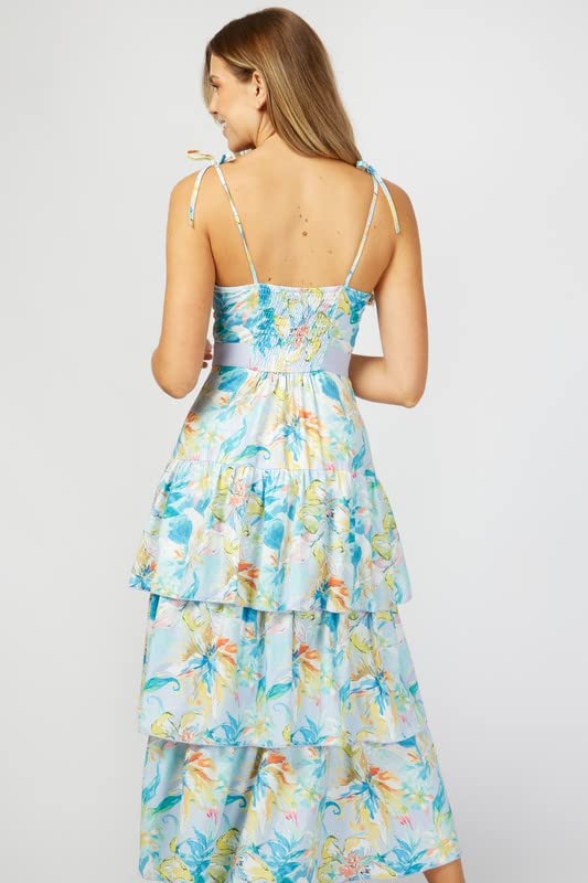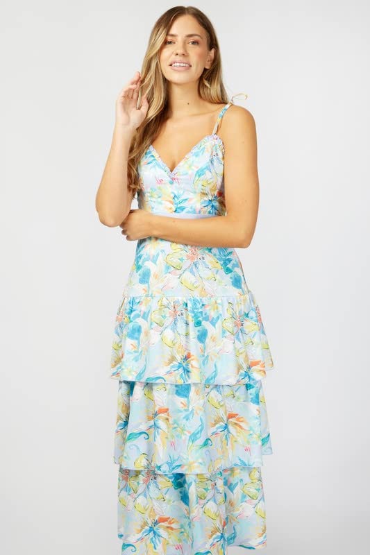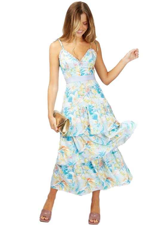Little Mistress - ليتل ميستريس فستان ماكسي متعدد الطبقات بطبعة زهور باستيل للنساء من صنبري مقاس L متعدد الالوان
