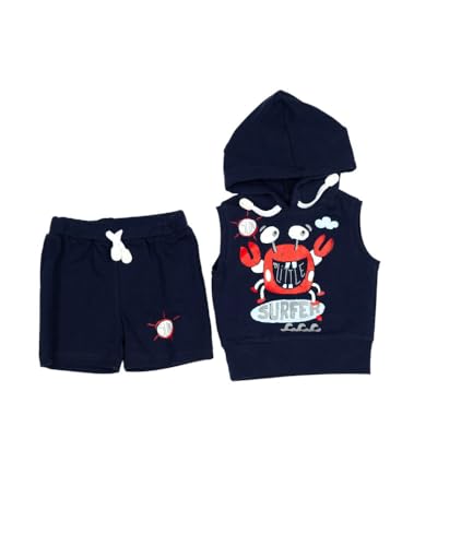 Berceau - طقم تيشيرت كت و شورت بطبعة Little Surfer للأولاد ، كحلي - Berceau