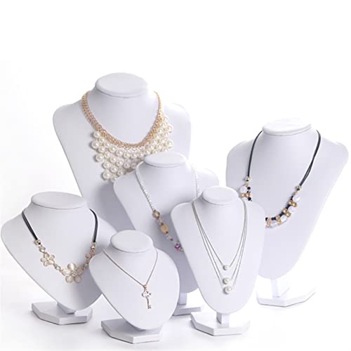 Liudan - حامل مجوهرات على شكل تمثال نصف جسم 6 خيارات مصنوع من جلد صناعي لعرض المجوهرات والسلاسل والدلايات مانيكان منظم ابيض اللون: ارتفاع 22 سم ليودان