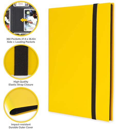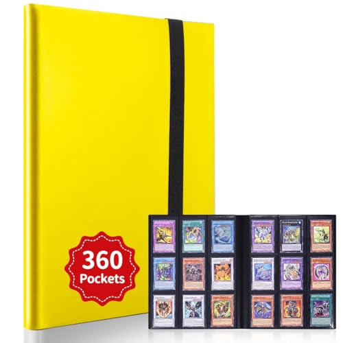 LIUDU - حافظة بطاقات بـ 9 جيوب، 360 جيب لبطاقات الالعاب مع 20 حافظة، حامل بطاقات التداول بسحاب لهدايا الاطفال (اصفر 360 جيب)