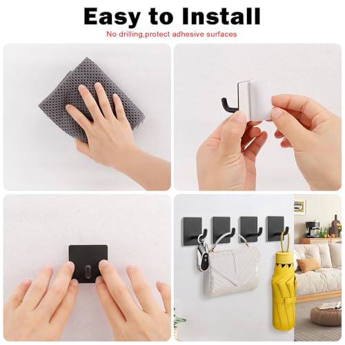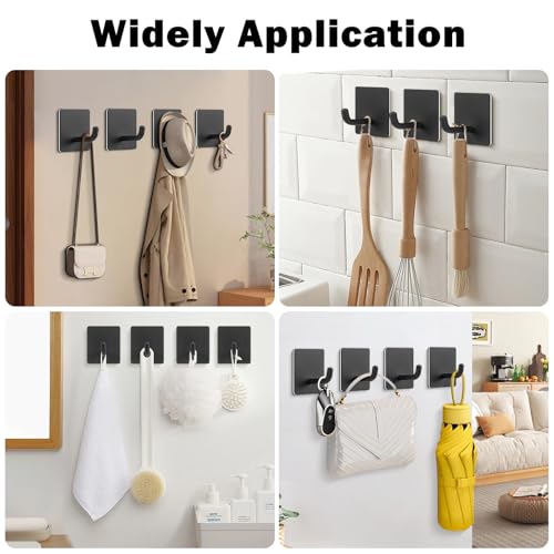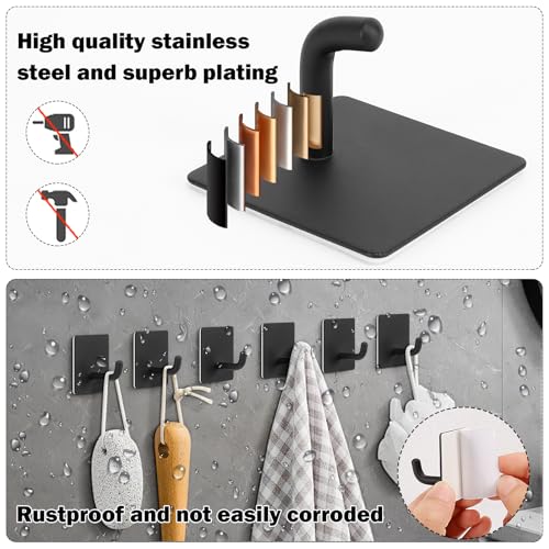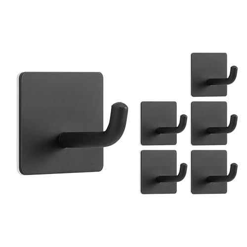 Livabber - ليفابر خطافات مناشف لاصقة، خطافات حائط ذاتية اللصق من الستانلس ستيل 304، خطافات دش مقاومة للماء للرداء / الملابس، شماعات مناشف للحمام والمطبخ وغرفة النوم، 6 عبوات (اسود)