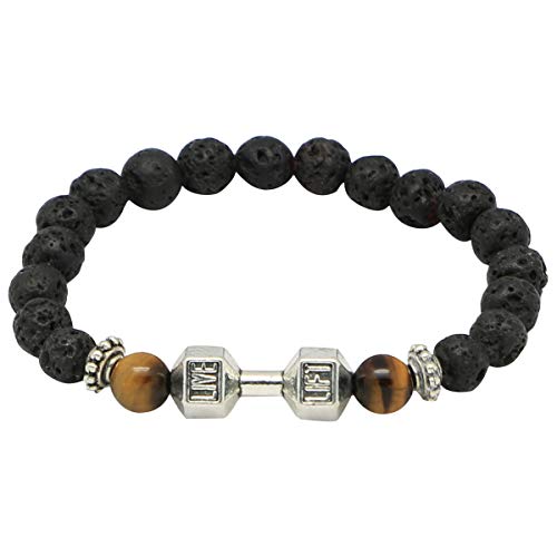 generic - سوار لايف ليفت مصنوع من حجر عين النمر البركاني، 18 سم، للجنسين، اسود