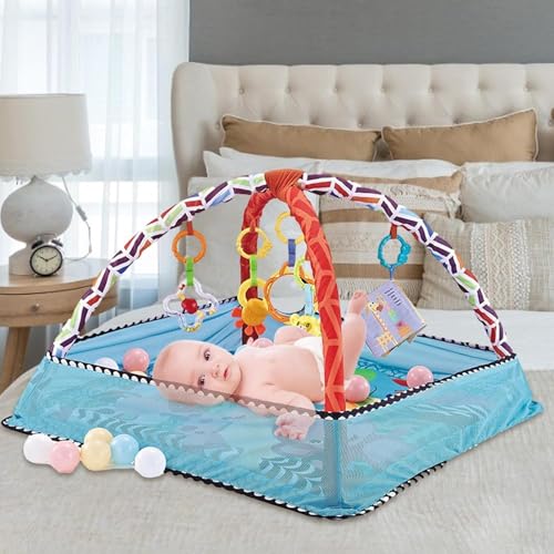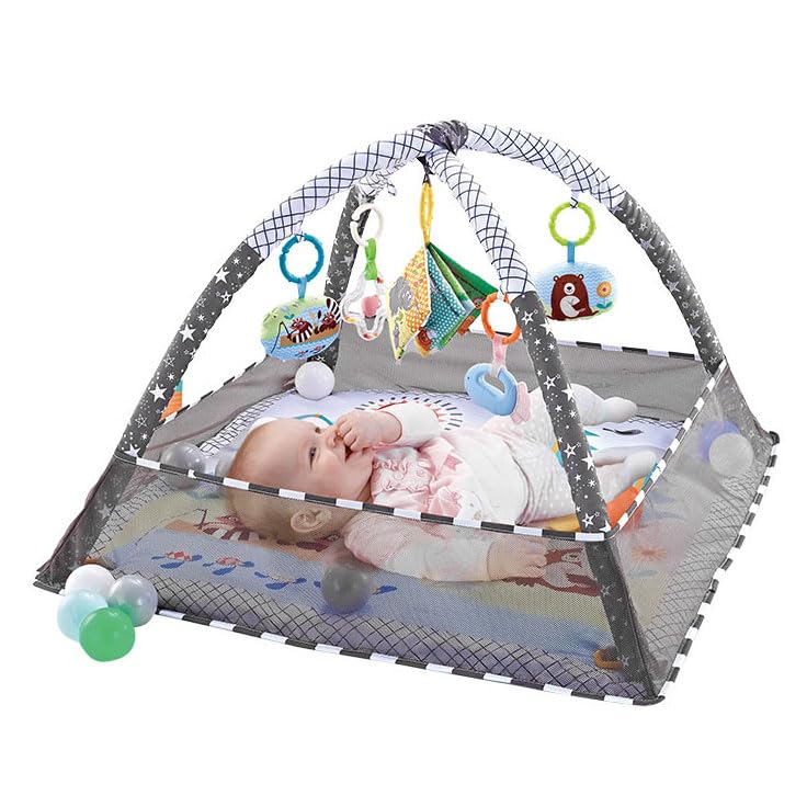 LIVIA - LIVIAプレイマット 0か月~ 赤ちゃん 幼児 子ども 幼児 ベビー ジム プレイジム プレイマット メリー 折り畳み式 ベビーおもちゃボールプールに変身 長く遊べる コンパクトに収納 安全 保護ネット 出産祝いプレゼント (グレー)