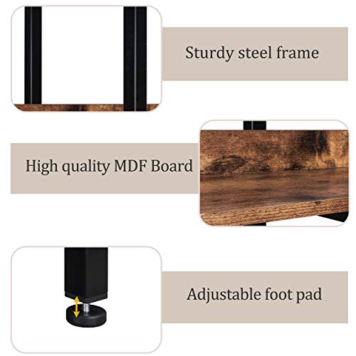 - خامة عالية الجودة: مصنوعة من ألواح خشب ام دي اف صلب وإطار فولاذي عملي مطلي بالمسحوق، هذه الأرفف الكبيرة القائمة باللون البني قوية ومتينة، يمكن لكل رف أن يتحمل ما يصل إلى 36 كجم، ويتحمل 181.4 كجم إجمالًا، ما يمنحك حلًا كاملًا للتخزين والديكور. كما أن تصميم اللوحة السميك بسطح أملس مقاوم للماء يجعله مريح للتنظيف اليومي بدون متاعب.