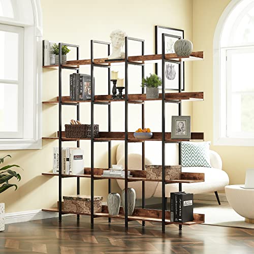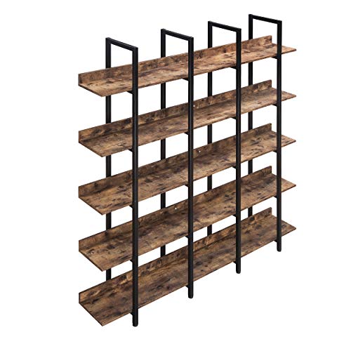 LiviNest - أرفف كتب صناعية من 5 طبقات من ليفينيست - رف كتب كبير مفتوح قائم من الصلب العتيق - أرفف عرض للمنزل والمكتب، بني