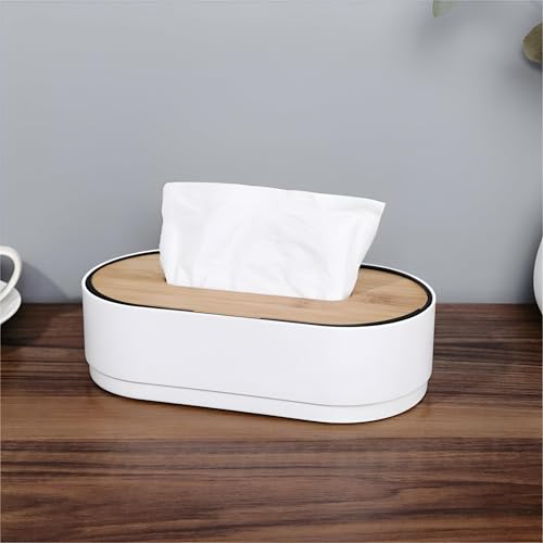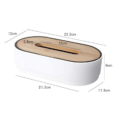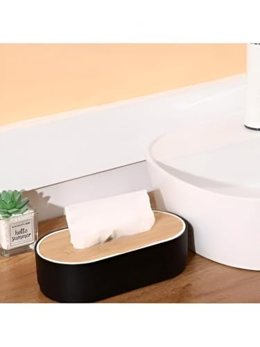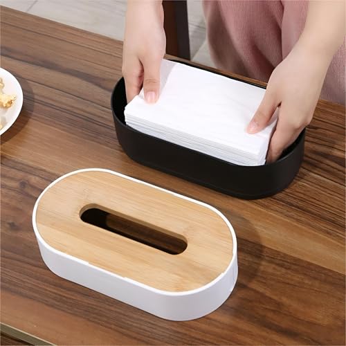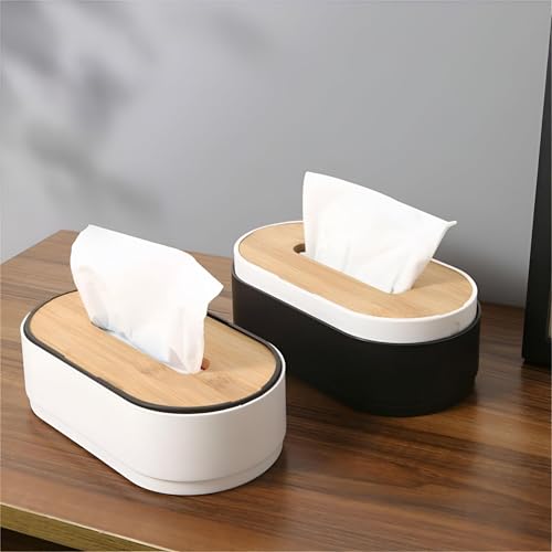 Generic - حامل مناديل لغرفة المعيشة، علبة مناديل بلاستيك بتصميم بيضاوي حديث بغطاء خشبي، تصميم باللونين الأسود والأبيض، حل تخزين عملي للديكور