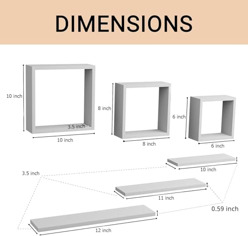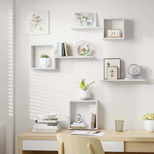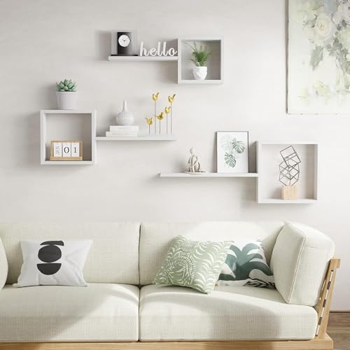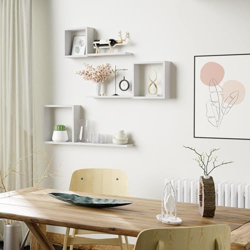 LIVINGLOOM - أرفف حائط مربعة معلقة على شكل مكعب، لتزيين الجدران في غرفة النوم وغرفة المعيشة والحمام والمطبخ والمكتب من ليفينجلوم (أبيض)