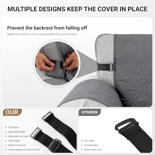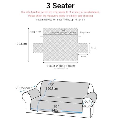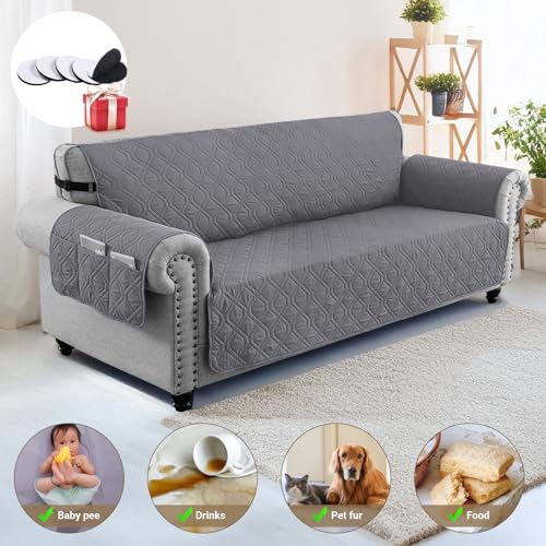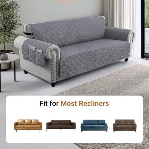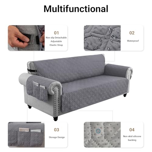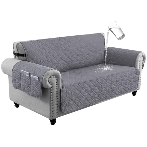 LIWEGHT - غطاء كنبة مقاوم للماء مبطن مضاد للانزلاق للكلاب، غطاء حماية للأثاث للحيوانات الأليفة مع حزام قابل للتعديل وقابل للغسيل من لايوايت، 3 مقاعد، رمادي