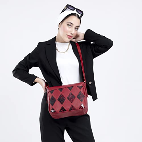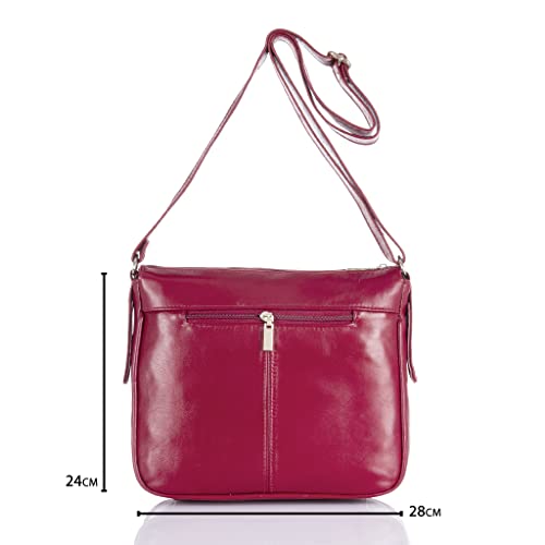 Generic - شنطه كروس حريمى جلد طبيعى سمبوكسات لون أحمر ليزار
