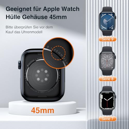 - [حماية مزدوجة] صُمم هيكل ساعة آبل سلسلة 7/8 من البولي كربونات المتين مقاس 45 ملم لتوفير حماية خارجية لسطح ساعتك مقاس 45 ملم. غطاء حماية شفاف وناعم مع شاشة حماية مدمجة يحمي ساعة أبل الخاصة بك من الغبار وبصمات الأصابع والخدوش.
