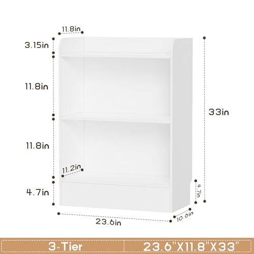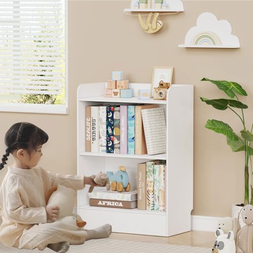 Lkeiyay - رف كتب ومنظم لتخزين الالعاب للاطفال من لكياي، 3 ارفف مفتوحة - رف العاب ابيض للكتب والاحجيات ومستلزمات الاطفال (ابيض