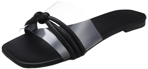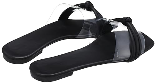 LKOER - شبشب مسطح سول تو سول شفاف بنعل جميل وتصميم شريط رفيع للنساء من لكور، شفاف × أسود، مقاس 40