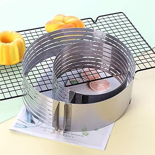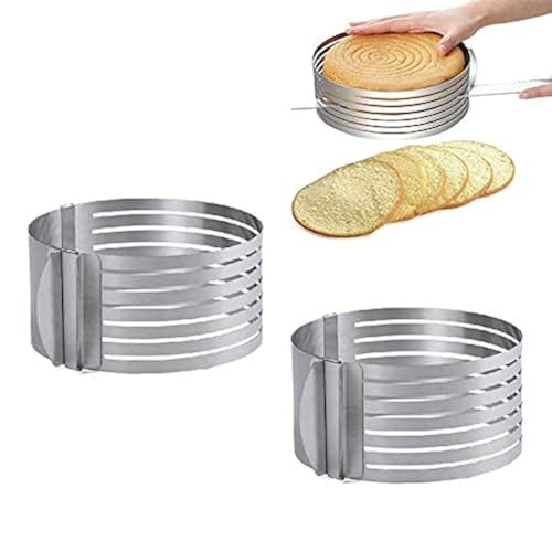 Spaceshoop - قطاعة قالب الكيك بحلقات قابلة للتعديل من الفولاذ المقاوم للصدأ بـ7 طبقات لتقطيع الخبز والكعك الدائري مقاس 15 - 20 من لاووي، 2 قطعة