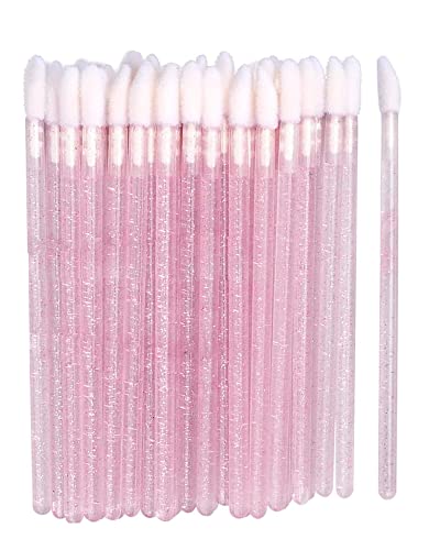 LLTGMV - فرش شفاه للاستعمال مرة واحدة من ال ال تي جي ام في، فرشاة لوضع ملمع الشفاه، مجموعة أدوات وضع ملمع الشفاه، عصا اختبار ملمع الشفاه للمكياج والإهداء، عبوة من 50 قطعة (وردي كريستالي)