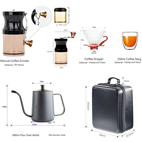 LMPN - مجموعة القهوة اليدوية تتضمن ماكينة صنع القهوة المحمولة للتخييم في الأماكن الخارجية ومطحنة حبوب ومقطر وغلاية قهوة وإبريق تقديم زجاج ومج وملعقة فلتر وتايمر وشنطة سفر من LMPN