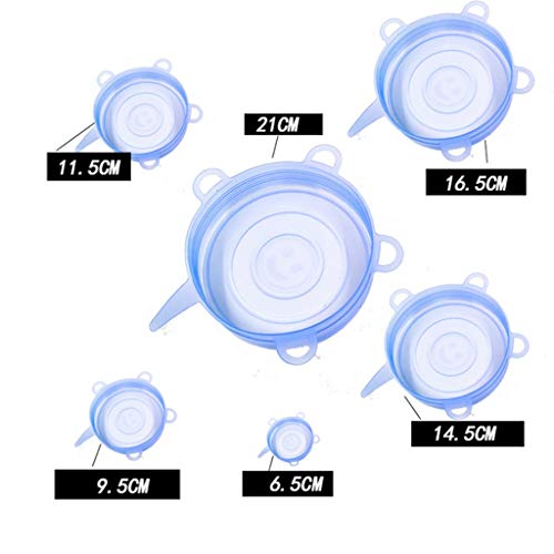 LMS - أغطية طعام مرنة من السيليكون قابلة لإعادة الاستخدام، أغطية طعام دائرية قابلة لإعادة الاستخدام لطبق الأكواب، غطاء طعام من السيليكون من درجة الطعام، 6 قطع (أزرق)