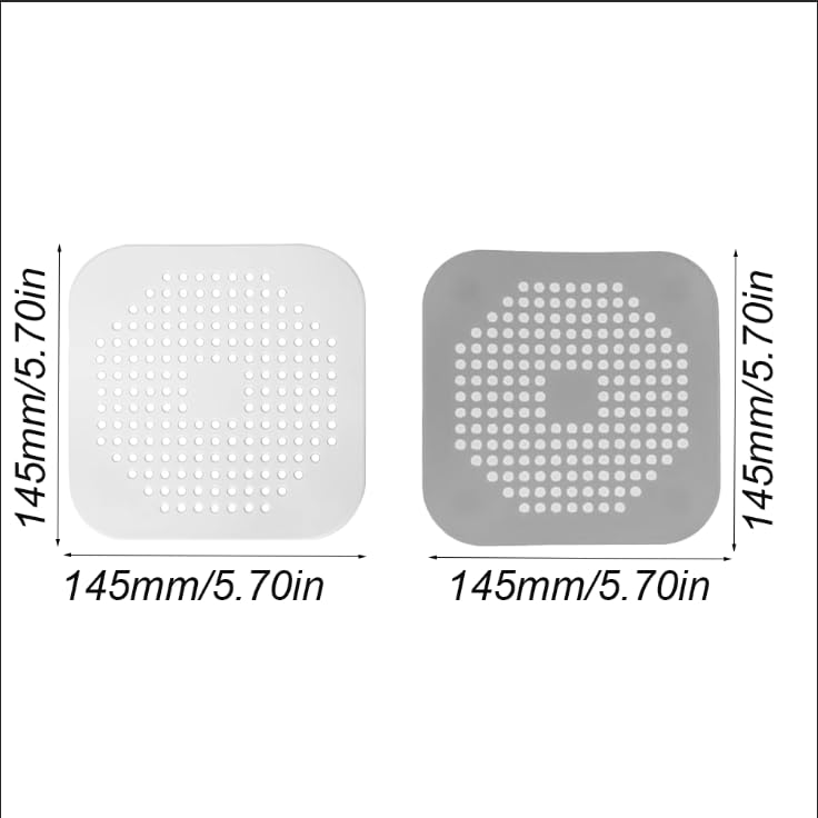 - سهلة التنظيف، فلاتر تصريف الدش سهلة التنظيف وسريعة الجفاف، فقط اغسلها بالماء الدافئ والصابون. المقاس الفردي حوالي 5.7 × 5.7 × 0.15 انش ويناسب معظم المصارف.