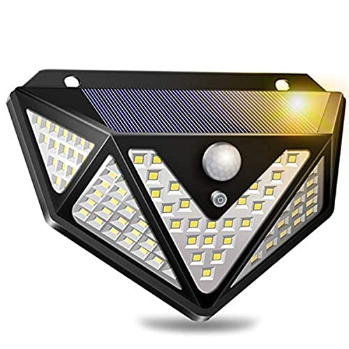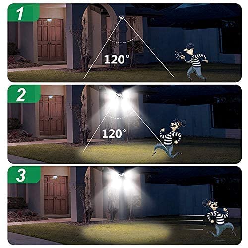LNIMI - ال نيمي 166 LED بالطاقة الشمسية للجدارمستشعر حركة بالاشعة تحت الحمراء السلبية - اضاءة خارجية - مصباح امان للحديقة مضاد للماء، أكريلونيتريل بوتادين ستايرين، أسود