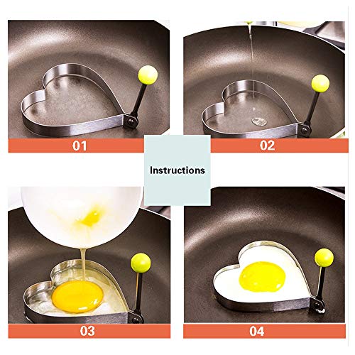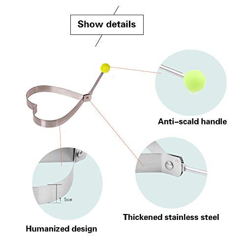 - ❤سهلة الاستخدام مع مقبض قابل للطي: المقبض القابل للطي سهل التعديل. سهلة الغسيل. تعمل قوالب البيض بشكل رائع، فقط تأكد من الضغط على الشكل بإحكام على المقلاة عند وضع البيض لأول مرة على المقلاة للحصول على الشكل بصورة جيدة. بمجرد الانتهاء من ذلك، يمكنك طهي البيض بالشكل الذي تريده. ✿يرجى ملاحظة ما يلي: يرجى إضافة طبقة من الزيت النباتي على حلقة قالب البيض قبل الطهي.