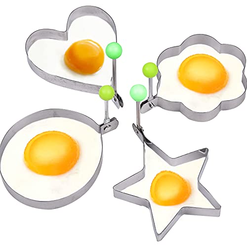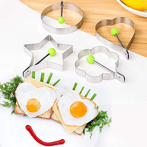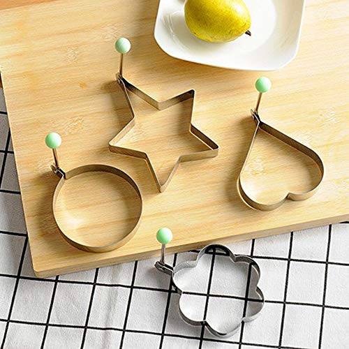 - ❤محتويات العبوة: مجموعة من 4 قطع من قوالب البيض المقلي واستمتع بوجبة إفطار مبهجة. تصميمات قلب، وزهرة، ونجوم خماسية مدببة، ودائرية. قالب بيض مقلي جميل الشكل، تصميم خاص لطهي البيض أو الفطائر للأزواج وكذلك لأفراد عائلتك.