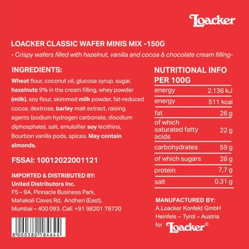 Loacker - رقائق ويفر بكريم كلاسيك مينيز ميكس من لوكر، وزن 150 جرام- ايطاليا