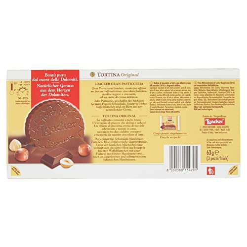 Loacker - رقائق ويفر مقرمش محشو بكريمة البندق ومغطى بكريمة الحليب تورتينا من لواكر - 63 جم