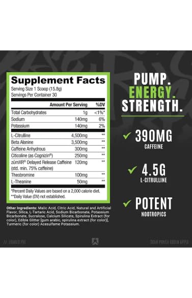 NutraNova Labs - محملة قبل التمرين | نكهة التفاح الاخضر | 30 حصة | دعم الطاقة والتركيز والتحمل | غير معدلة وراثيا وخالية من الغلوتين