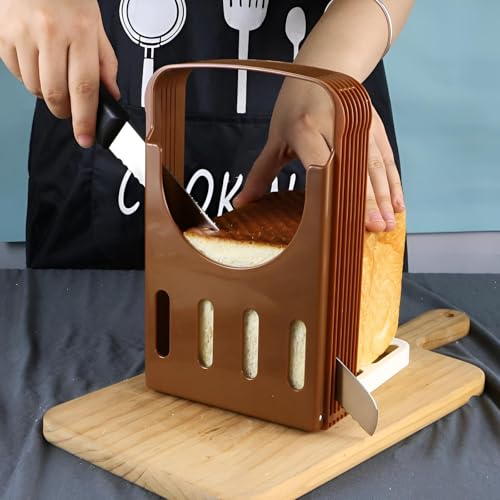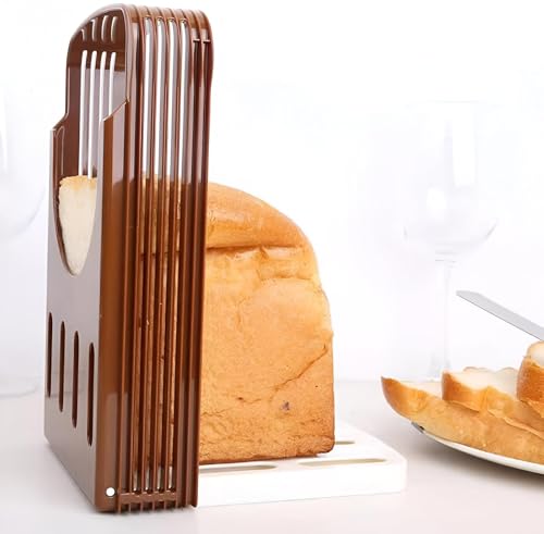 Generic - Loaf Cutter - دليل تقطيع الخبز البلاستيكي البني لشرائح متساوية تماما في كل مرة - قابلة للطي وقابلة للتعديل ، مثالية للخبز والخبز المحمص والسندويشات محلية الصنع