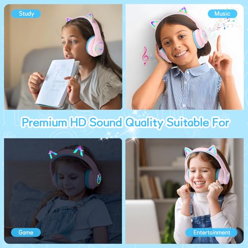 - 【إضاءة رائعة】تأتي سماعات الرأس التي تعمل بالبلوتوث للأطفال مع إضاءة ليد ملونة بالفضاء اللوني ار بي جي على شكل أذن قطة، يمكن النقر نقرًا مزدوجًا على الزر للتحكم في التشغيل والإيقاف، لا تثير الإضاءة الرائعة فضول الأطفال فحسب، بل تجعل الأطفال لا يشعرون بالوحدة في الليل، مما يجلب متعة موسيقية فريدة للأطفال.