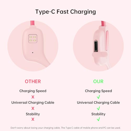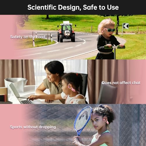 LOBKIN - سماعة أذن لاسلكية خفيفة الوزن ومقاومة للماء بتصنيف IPX5 بتصميم مفتوح مع بلوتوث 5.3 للرياضة الخارجية والسفر والجري، مناسبة للأولاد والبنات من لوبكين، لون وردي