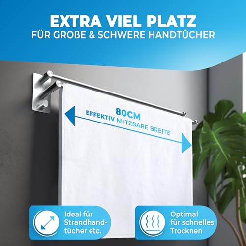 - ✅ كبيرة للمناشف المشدودة - تتميز قضبان المناشف بعرض فعال للاستخدام 60/80 سم وبالتالي فهي مثالية للمناشف الكبيرة والعريضة جدًا.