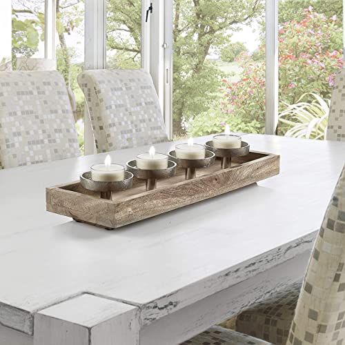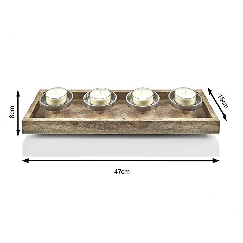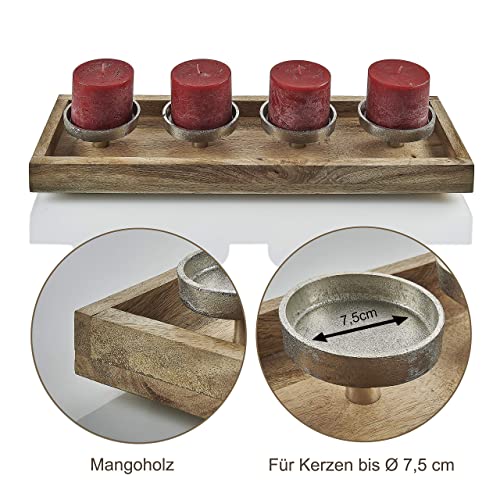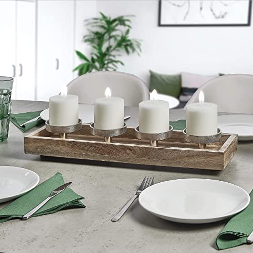 LOCALIS - شمعدان من خشب المانجو من لوكاليس مع حوامل من الألومنيوم | بدون دبوس | حامل شموع | حامل شموع | ديكور مثالي للطاولة | مقاس 47 × 15 × 8 سم