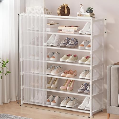 - هيكل بلاستيكي مع قضبان معدنية، مما يوفر رفًا قويًا من ستة مستويات.
