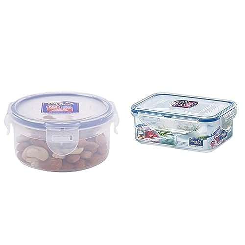 LocknLock - علبة طعام دائرية 300 مل HPL932 + من لوك اند لوك مستطيلة مع فواصل، 460 مل، HPL814