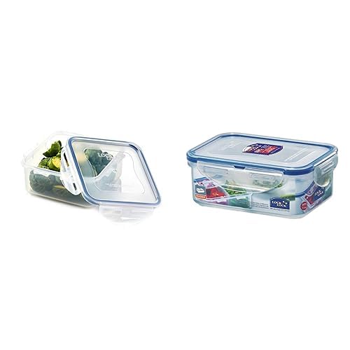 LocknLock - حاوية بلاستيكية مربعة 600 مل من لوك اند لوك + حاوية طعام قصيرة مستطيلة الشكل من لوك اند لوك HPL814 سعة 460 مل
