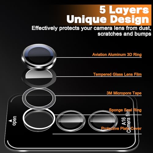 - [الموديلات المتوافقة]: واقيات عدسة متوافقة فقط مع عدسة كاميرا سامسونج جالاكسي A16 5G / 4G، متوافقة مع جرابات الحماية بنسبة 99%، يرجى التأكد من موديل موبايلك قبل الشراء.