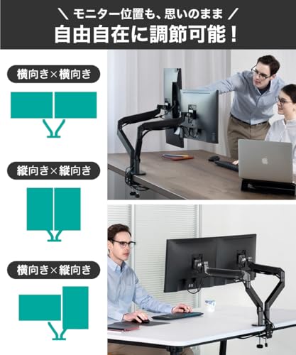 LOE - حامل شاشة مزدوج الأذرع ال او زد 2 يثبت على المكتب، مزود بحامل بزنبرك غازي من ليو