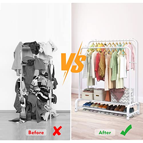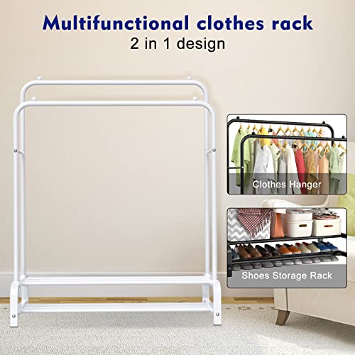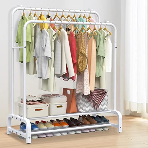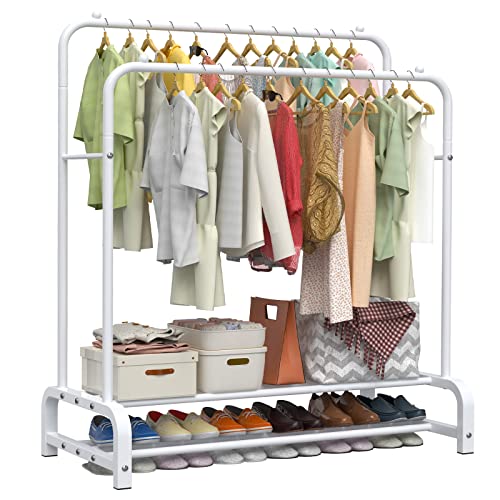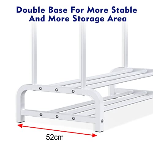 LOEFME - شماعة ملابس بقاعدتين لتحمل عالي، رف ملابس بتصميم بسيط لغرفة النوم، شماعة ملابس مزدوجة لتعليق الملابس، شماعة ملابس معدنية قائمة بذاتها من لوفمي، أبيض