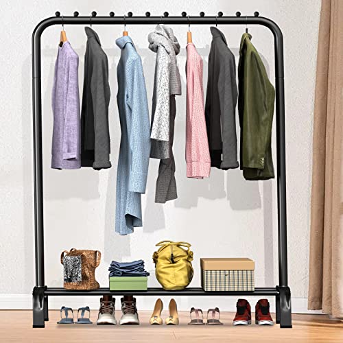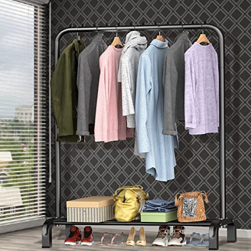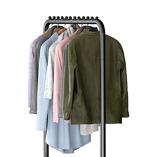 LOEFME - قضبان ملابس لغرفة النوم رفوف معاطف قائمة بذاتها رف شديد التحمل حامل معدني بسيط للبالطو والجيبة والقمصان والجواكت بلون أسود من لوفمي