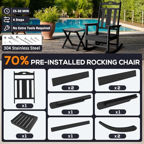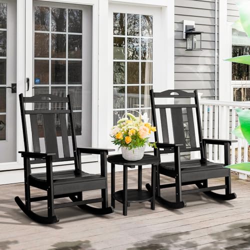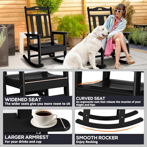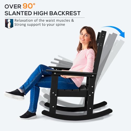 LOENIY - كرسي هزاز مناسب للأماكن الخارجية والفناء ومقاوم لجميع الأحوال الجوية، كرسي هزاز مصمم بمسند مرتفع للظهر من لويني (قطعة واحدة، لون أسود)