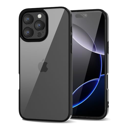 LoeoeL - جراب حماية شفاف هايبرد 16 برو ماكس لموبايل آيفون 16 برو ماكس [مصد بلاستيك صلب وسيليكون ناعم] رفيع من الاكريليك المقاوم للاصفرار للنساء من لويويل، لون أسود