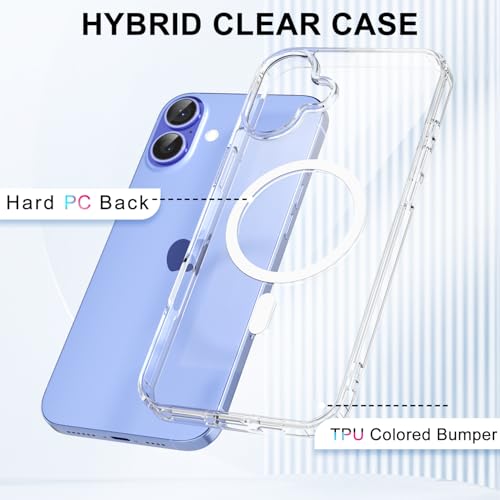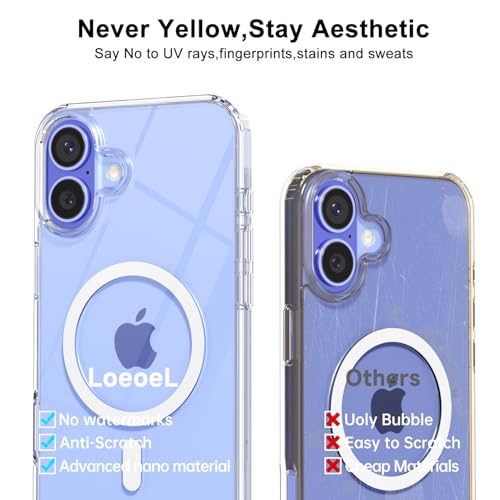 LoeoeL - جراب مغناطيسي شفاف لموبايل آيفون 16 بلس من لويل، متوافق مع إكسسوارات ماج سيف، مصمم بجزء سيليكوني ممتص للصدمات من البولي يوريثين اللدن المقاوم للحرارة وغطاء صلب شفاف مضاد للاصفرار للنساء والرجال، شفاف