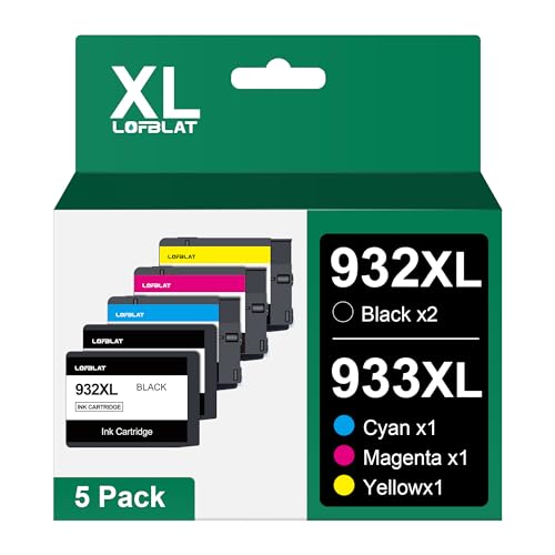 LOFBLAT - خراطيش حبر بديلة من لوفبلات متوافقة مع اتش بي 932 933 932XL 933XL لاوفيس جيت 6600 6100 6700 7510 7110 7610 7612 (أسود وسيان وأرجواني وماجنتا وأصفر، 5 قطع)